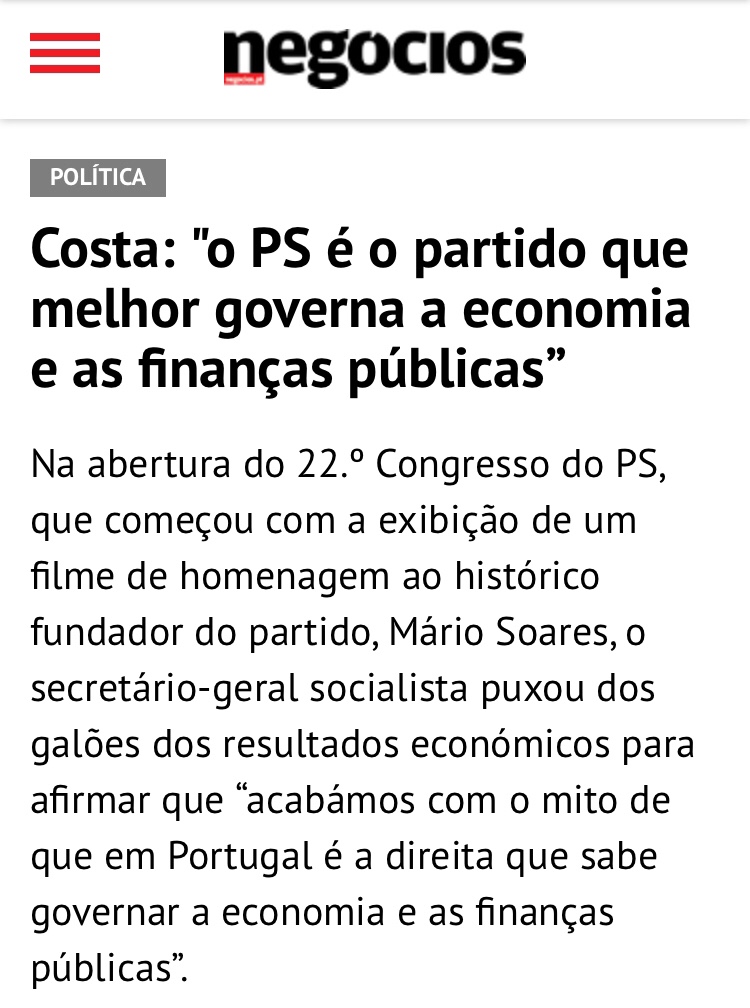 Foi isto que ouvimos da boca do actual primeiro-ministro, António Costa.