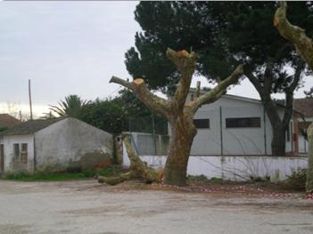 Dois crimes ambientais foram cometidos na freguesia de Maiorca, concelho da Figueira da Foz. E por mais improvável que pareça (ou não) estes crimes tiveram a mão da nova Junta de Freguesia, eleita há pouco mais de 3 meses, e presidida por Filipe Dias. A poda que a Junta mandou fazer aos plátanos da “feira velha” transformou-se – por manifesta incompetência e ignorância – num massacre. Cortaram os fortes ramos com motoserras, e deixaram as árvores em estado lastimável (como disse o autor do blog figueiranafoz, citando alguns moradores).