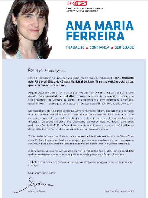 Especulando, a Comissão Política Concelhia (afecta à candidatura de Ana Maria Ferreira) ficou com os Cadernos Eleitorais em sua posse propositadamente, tendo já em vista uma possível impugnação por adultério.